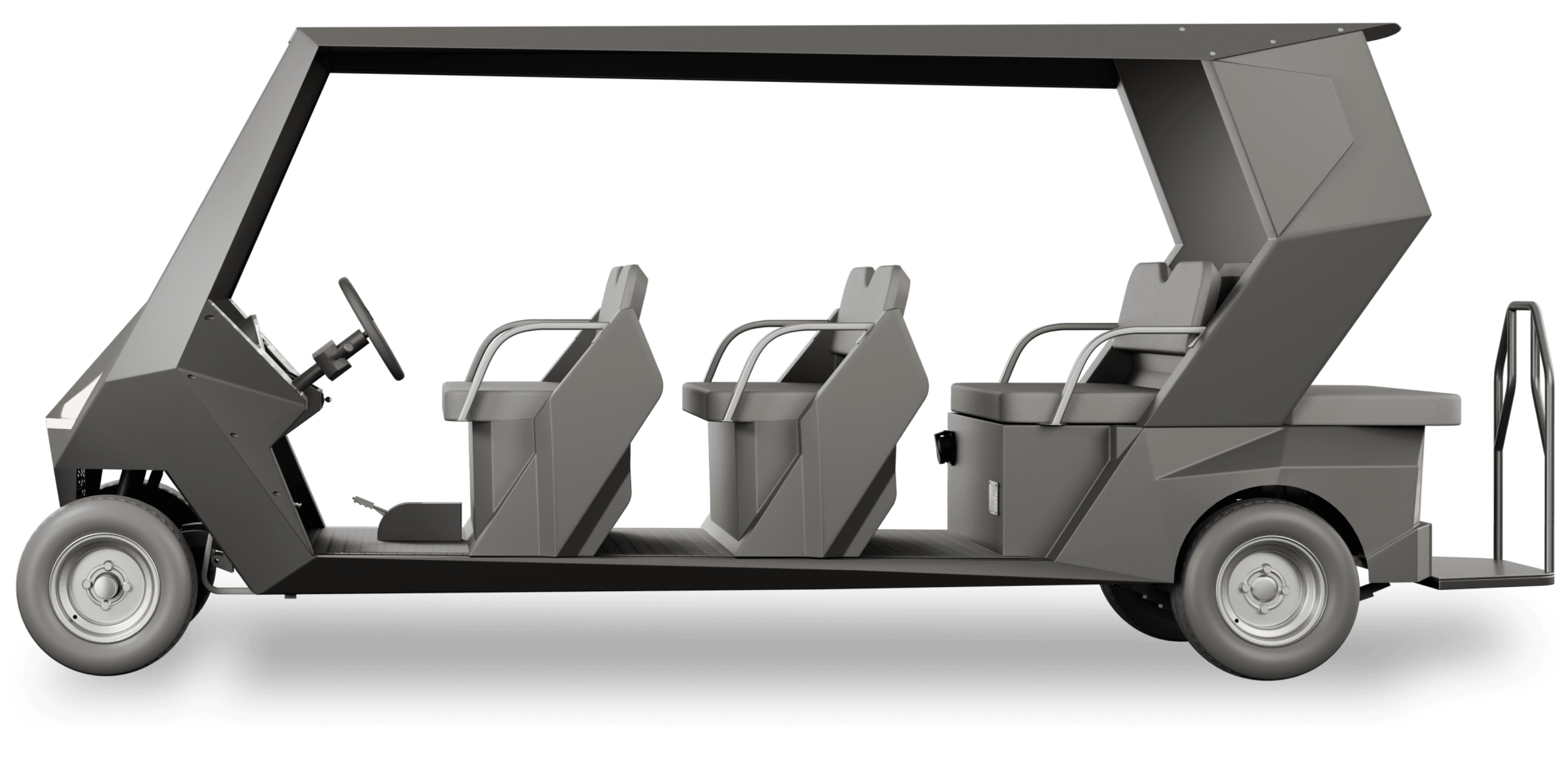 Seating Options: 4 Seater / 6 Seater / 8 Seater (Symmetrical seating layout) Vehicle Type: All-electric executive leisure shuttle 4-wheeler configuration