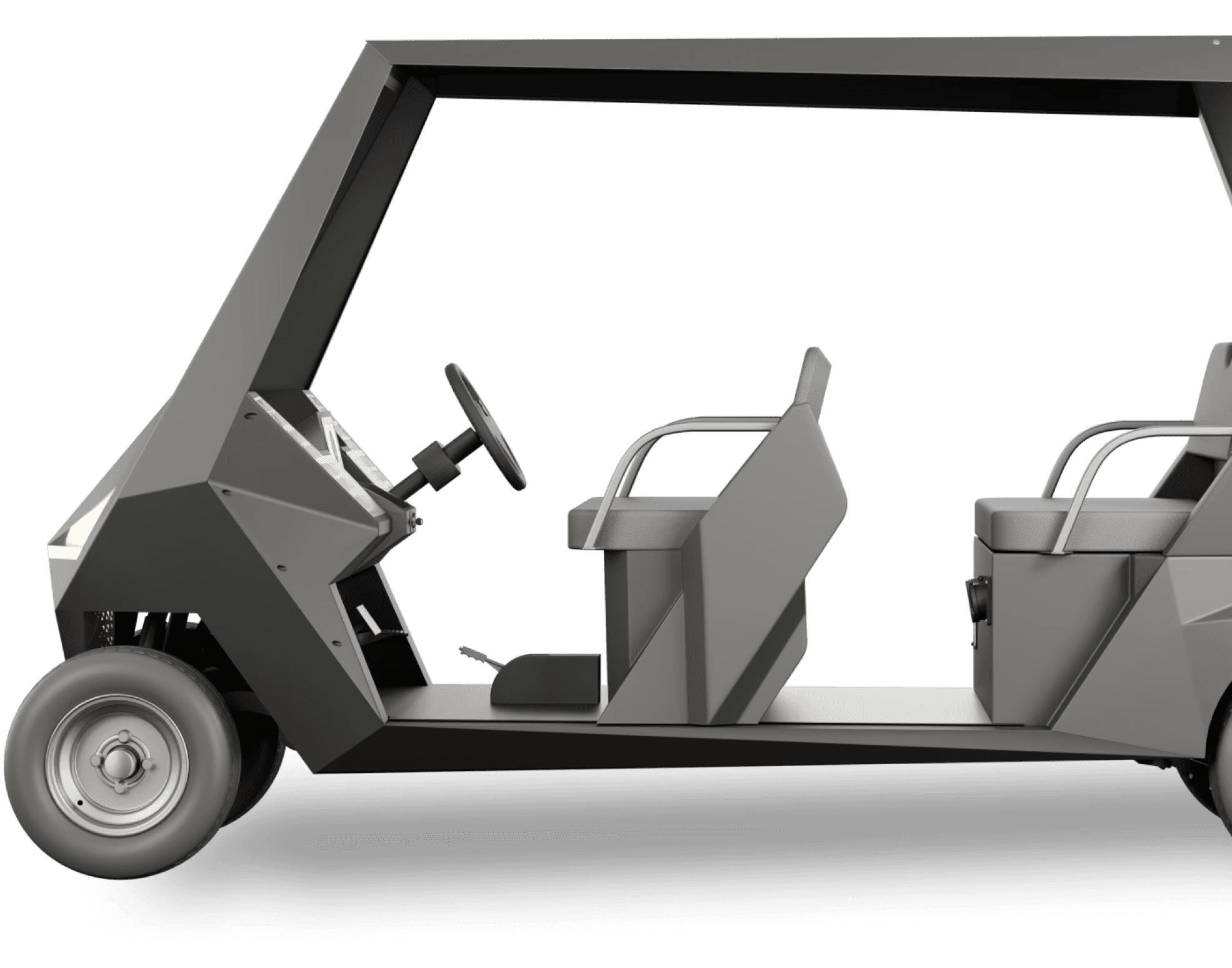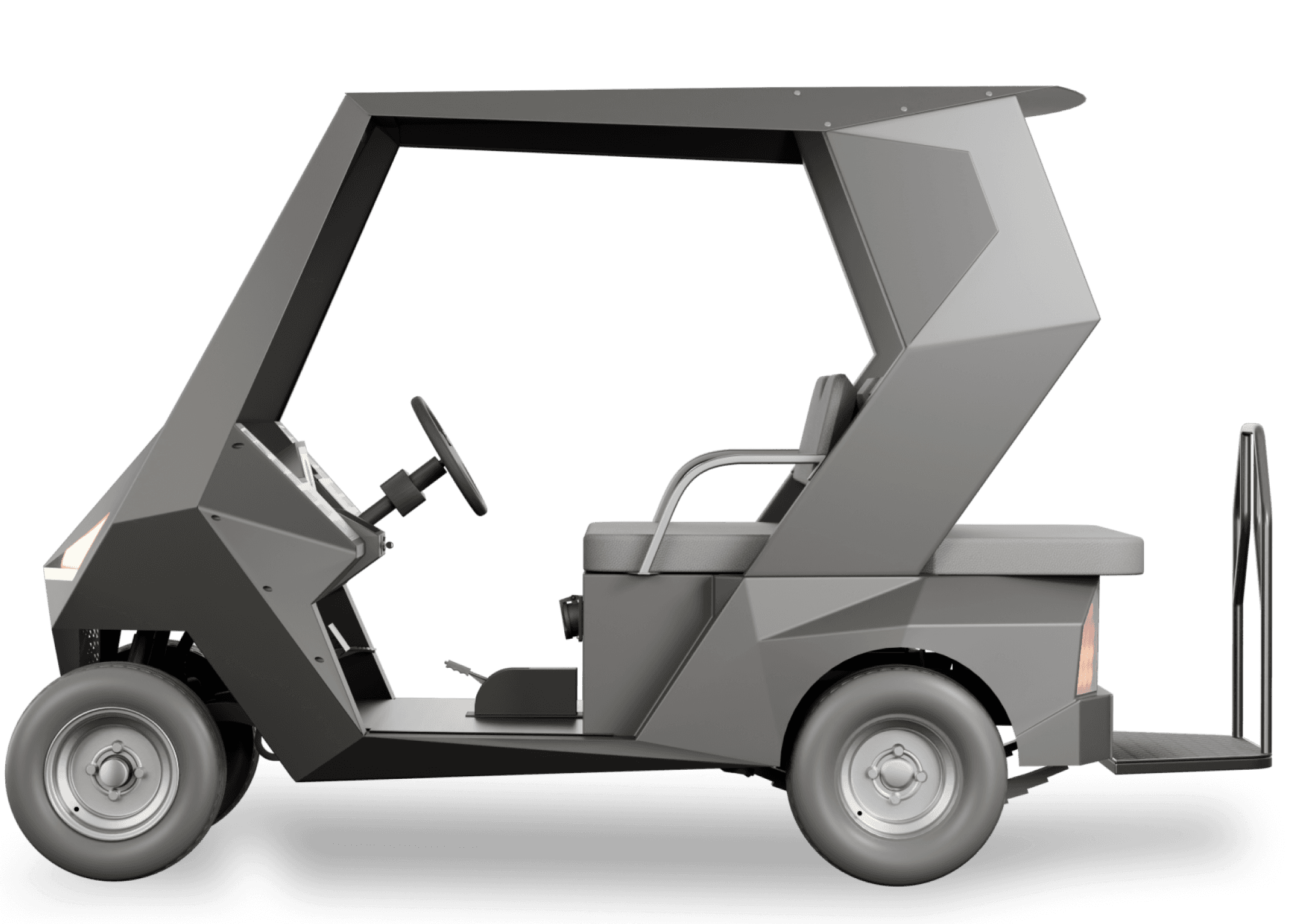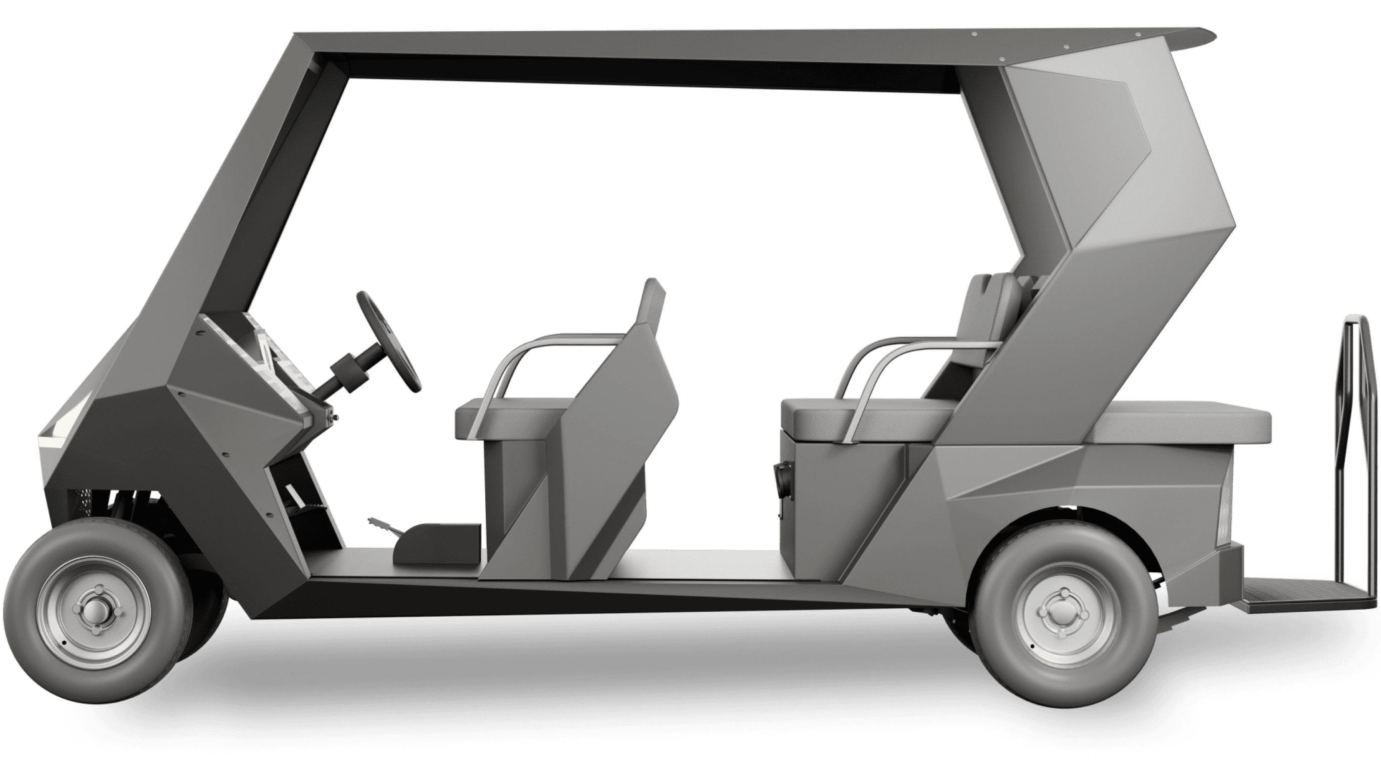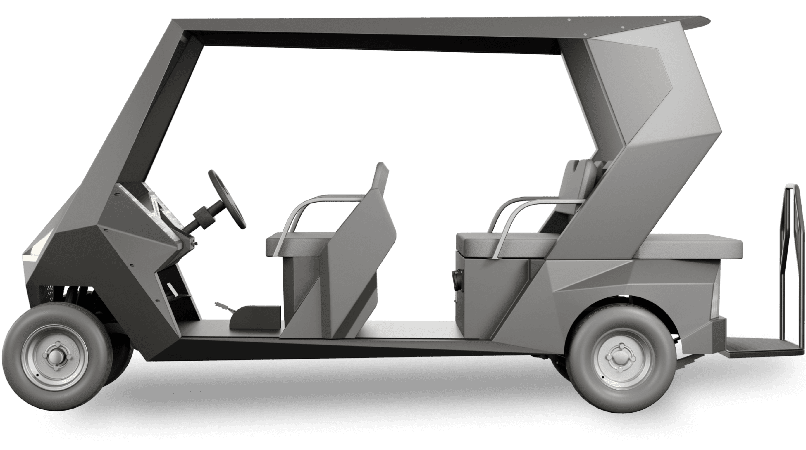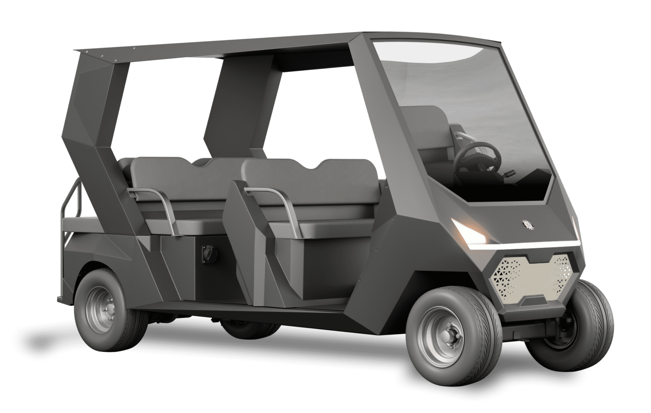 VELAR is an all-electric executive shuttle designed for leisure-driven environments. Its compact form and symmetrical 4-seater layout make it ideal for controlled spaces like golf courses, resorts, and private campuses. Powered by a 4 kW AC induction motor and a high-efficiency lithium system, VELAR delivers quiet performance with effortless control. Every detail focuses on smooth movement, refined comfort, and reliable daily operation.